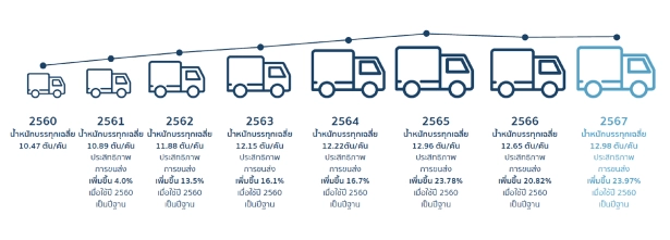 ในปี 2567 บริษัทฯ ได้พัฒนาผลิตภัณฑ์แผ่นคอนกรีตพรีคาสต์ให้มีน้ำหนักลดลง และอุปกรณ์เสริมที่สามารถใช้บรรจุชิ้นงานได้มากกว่าเพื่องานขนส่งที่คุ้มค่า ทำให้สามารถเพิ่มน้ำหนักบรรทุกเฉลี่ย 12.98 ตันต่อคัน ประสิทธิภาพการขนส่งเพิ่มขึ้น 23.97% เมื่อเทียบกับปีฐาน