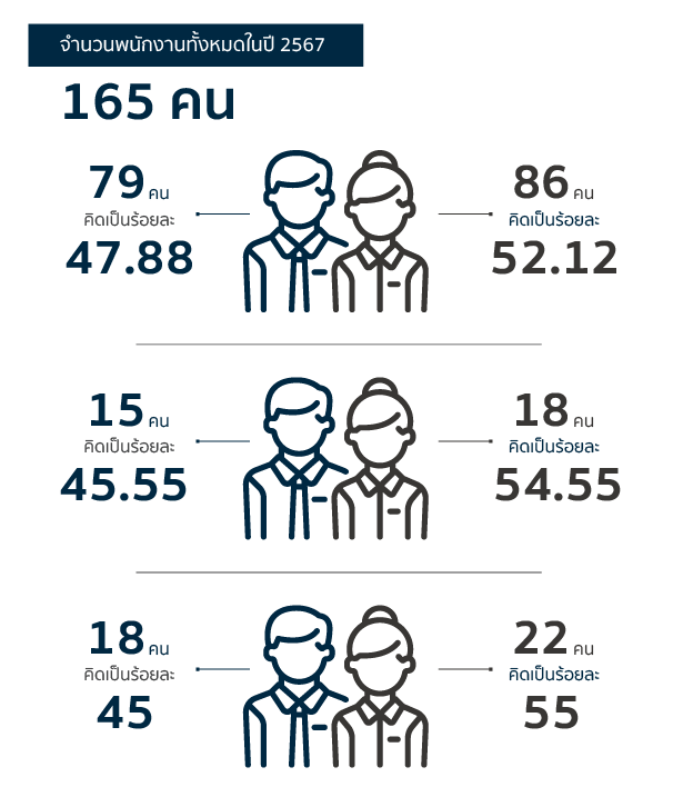 | กลุ่มงาน / สายงาน / หน่วยงาน | ชาย | หญิง | รวม |